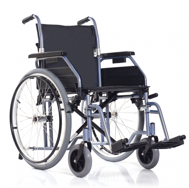 • Спинка складная; высота спинки нерегулируемая, ручки для сопровождающего лица. Подлокотники откидные, регулируемые по высоте.