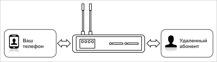 В устройство устанавливается две SIM-карты. Входящие звонки принимаются на первую SIM-карту. Регистратор принимает вызов и перенаправляет его на ваш телефон через вторую SIM-карту.